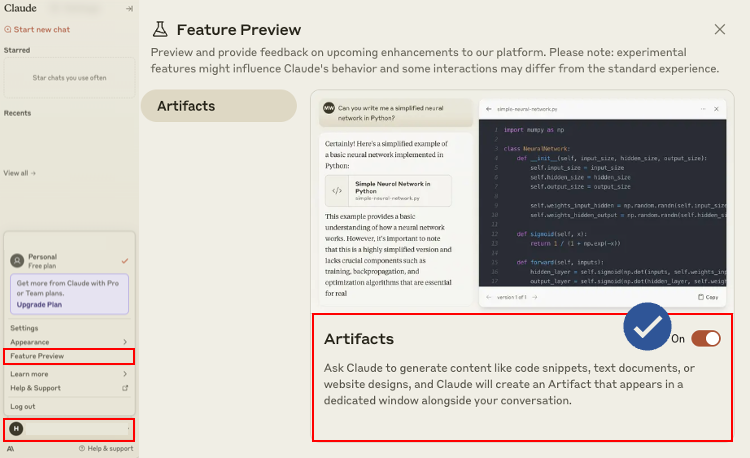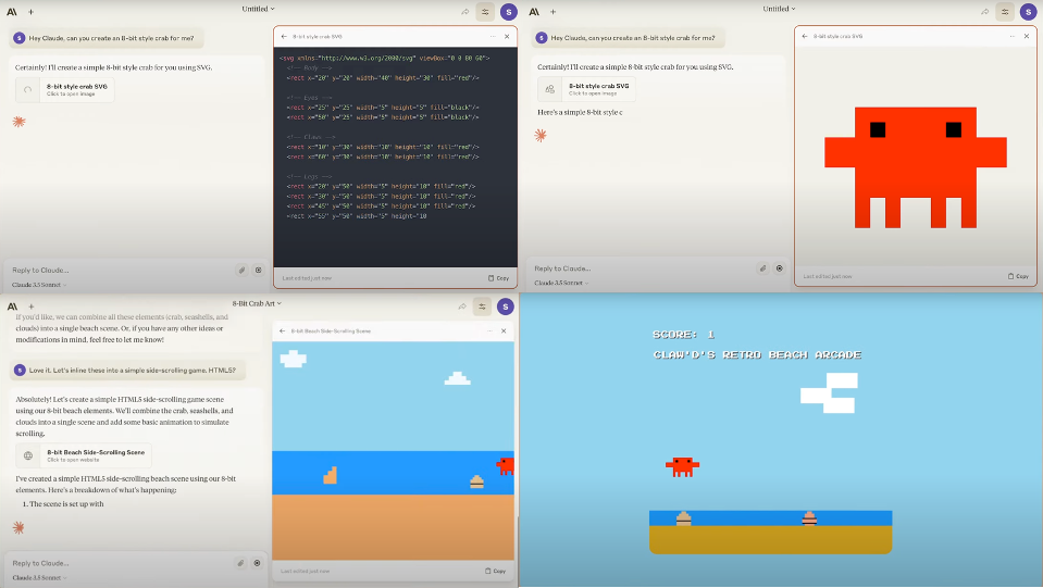 Artifacts(아티팩트)는 사용자가 코드 스니펫, 텍스트 문서 또는 웹사이트 디자인과 같은 콘텐츠를 생성할 때, 생성된 결과물을 실시간으로 보고 편집할 수 있는 동적 작업 공간을 제공합니다.