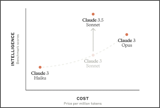 Claude 3.5 Sonnet은 향후 출시될 Claude 3.5 모델 중 첫 번째 모델로, 중간 가격대의 모델인 Claude 3 Sonnet의 속도와 비용을 유지하면서도 다양한 평가에서 경쟁 모델과 Claude 3 Opus를 능가하는 뛰어난 성능을 보여줍니다.