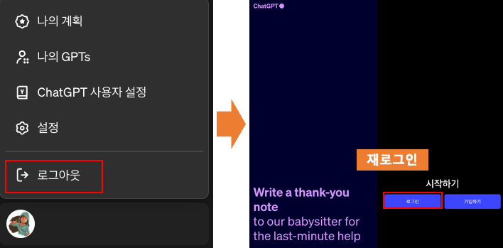 2. ChatGPT 사이트 로그아웃 및 재로그인