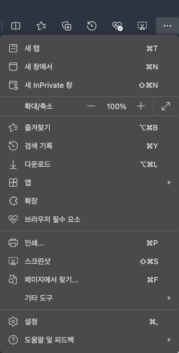 엣지에 들어가신 후에 우측 상단에 쩜 3개를 눌러줍니다.
