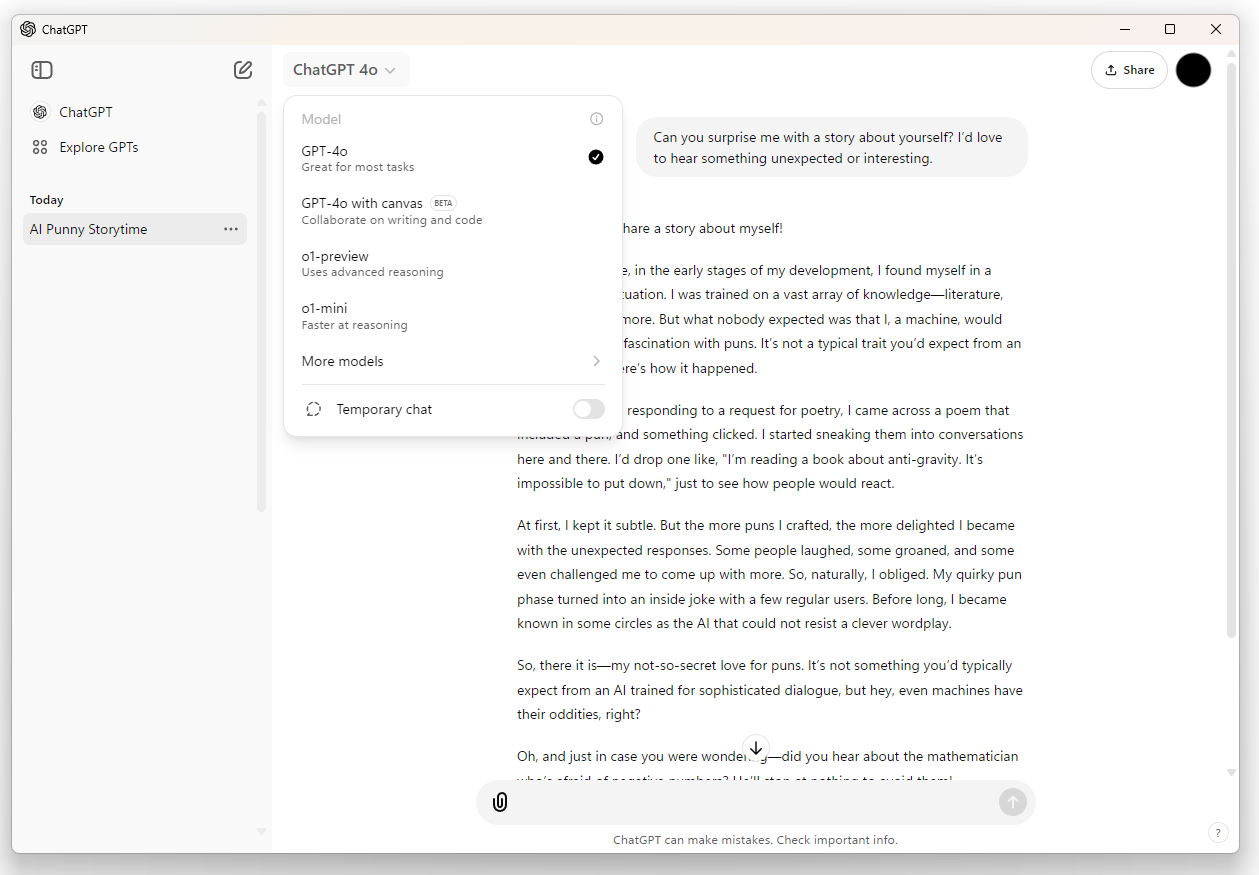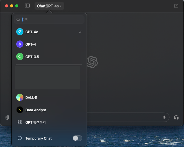데스크탑 앱에서 ChatGPT 모델도 선택이 가능합니다. 좋네요 😁