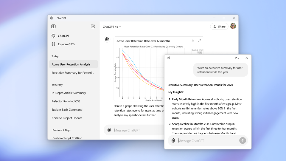 OpenAI에서 ChatGPT Desktop(데스크탑) 전용 앱이 출시되었습니다.