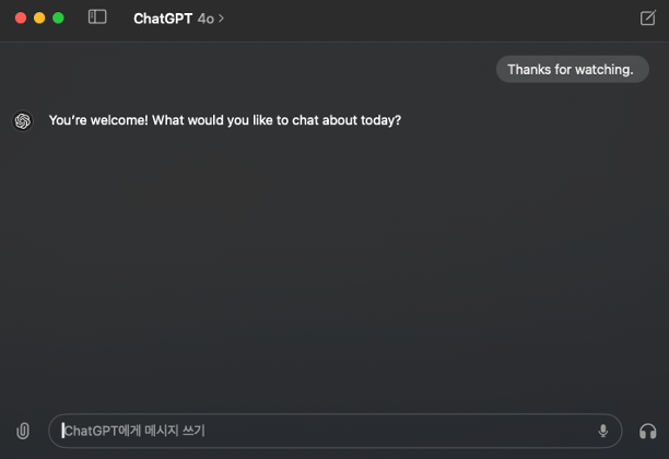OpenAI에서 시연했던 영상 그대로 데스크탑에서 이제 저희도 사용할 수 있습니다. 음성 대화, 사진, 영상 등을 사용할 수 있습니다. 🥳