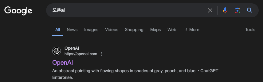 화면 보고 똑같이 하시면 됩니다. 구글에 들어가서 "오픈ai"를 검색합니다.