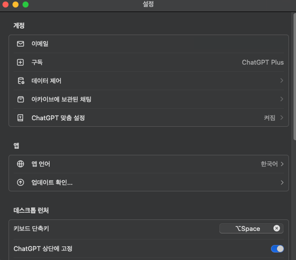 6. ChatGPT 데스크탑 앱의 설정 및 기능 - 맥(Mac) 사용자